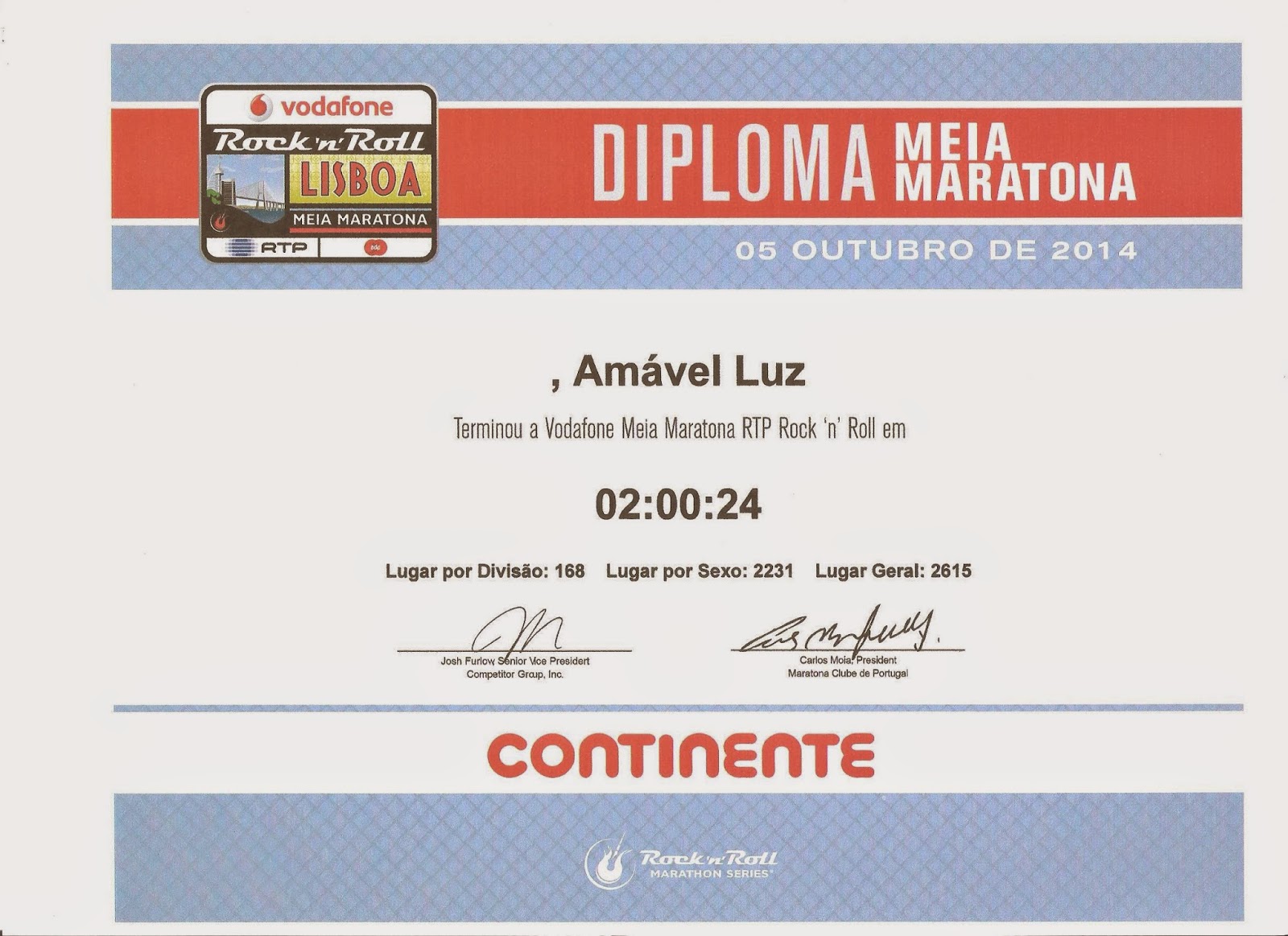 Dizia eu, objectivo meio conseguido, pois se por um lado um dos objectivos era terminar uma meia maratona, o que aconteceu, o outro seria fazê-lo abaixo das 2 horas de provas, e no final o relógio marcava 2h02'48'', mas fica para uma próxima ocasião, quem sabe...